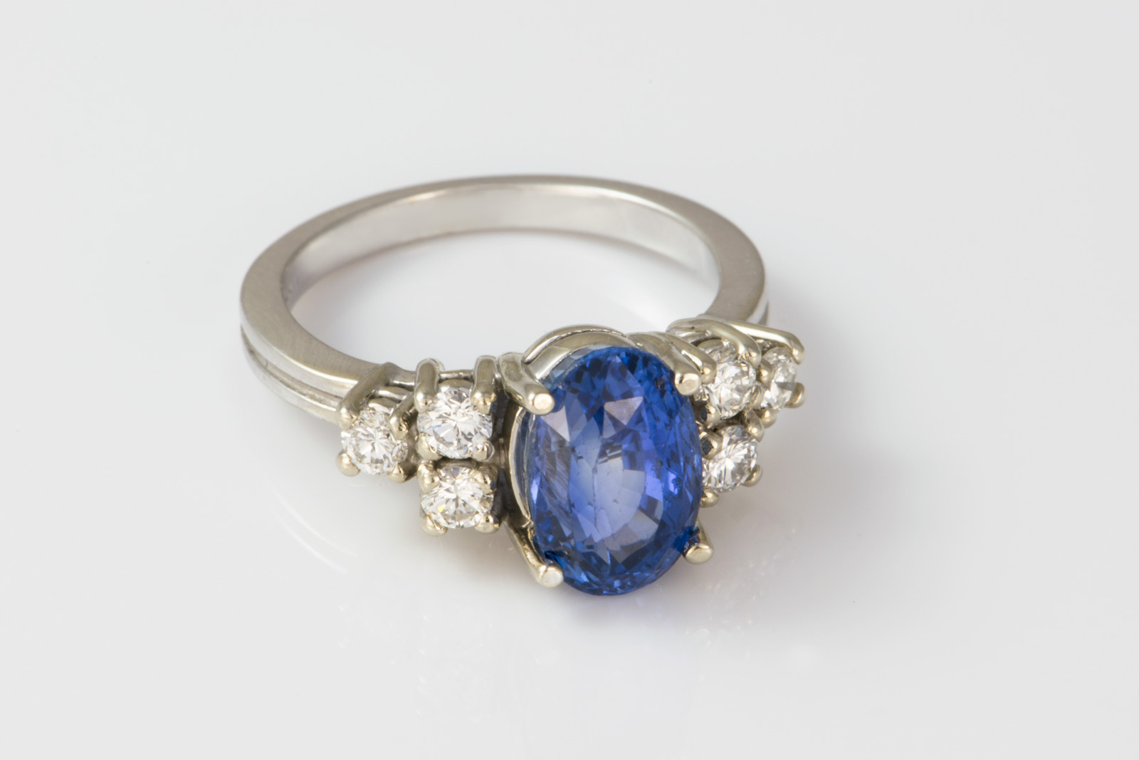 14k White Gold ♦ 4.9 Grams ♦ 3.49ct Natural Ceylon Sapphire ♦ .48ct Total Diamond Weight